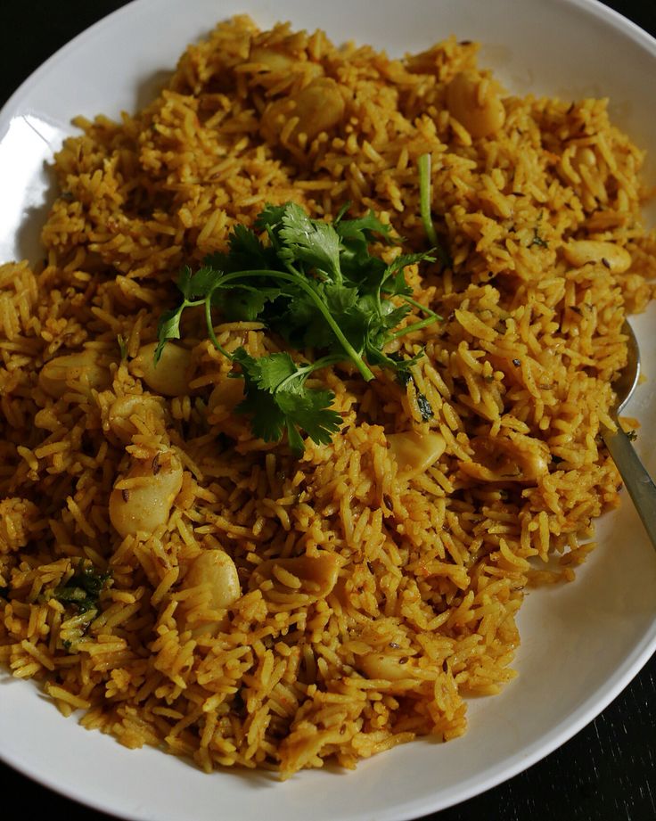 Veg Pulav – Gheer Rice – Peas Pulav – Kashmiri Pulav – Nellikkai Pulav – Gobi Pulav – Mushroom Mutter Pulav – Kuska – Veg Biriyani – Mushroom Biriyani – Malli Biriyani - Curry Jackfruit Biriyani – Butter Beans Pulav – Hyderabad Dhum Biriyani – Bisibelebath.
